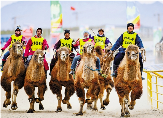 3月8日,阿拉善骆驼超级联赛总决赛在阿拉善左旗巴彦浩特赛驼场火热进行。来自内蒙古巴彦淖尔市、锡林郭勒盟及阿拉善盟本地的60余名选手携爱驼参加了骆驼场地赛、骆驼越野赛、骆驼接力赛、乘驼射箭等特色竞技比赛项目的角逐。 新华社 康文魁