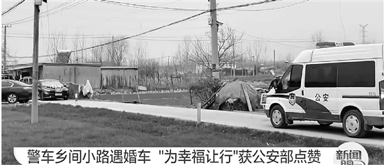 路窄情宽,警车为迎亲车队让行