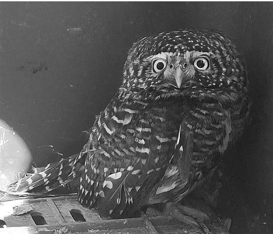 本报讯 “我家飞来一只猫头鹰,你们快来看看!”近日,市民周先生急匆匆报警求助,金华金东公安塘雅派出所民警叶宇轩随即赶去,发现这位“不速之客”已被妥善保护起来了。