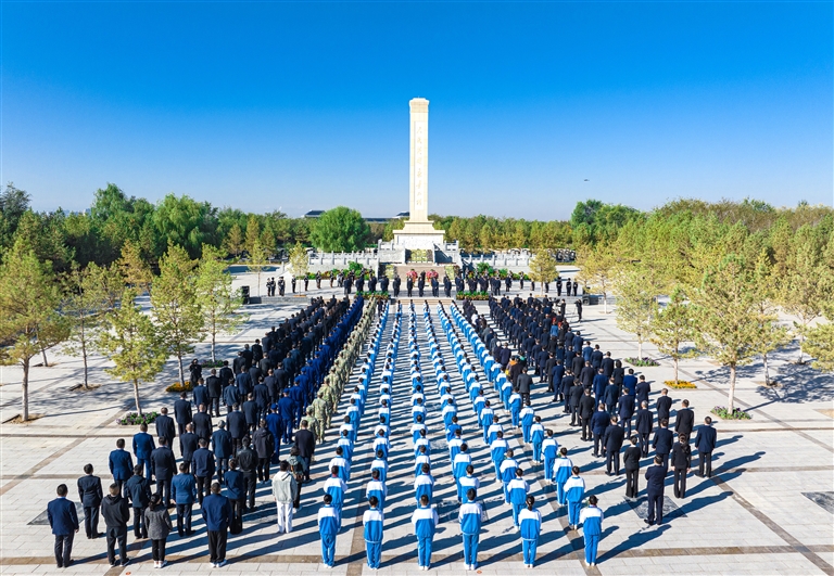 9月30日上午,昌吉州烈士纪念日公祭仪式在昌吉烈士陵园举行。 图为公祭仪式现场。□本报记者 何 龙摄