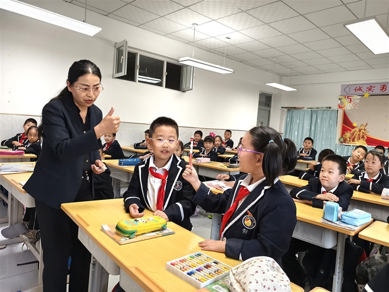 “相比旧版教材,新版教材的确提升了难度。对此,我们已制定了相应的教学策略,会根据学生的情况,循序渐进开展教学。其次,还要运用多种教学手段,增加课堂趣味性,提升学生学习兴趣。”谈到教学方法,郁春玲表示,“作为教师,要准确抓住教学重点,把英语学习与现实生活更紧密地结合起来,创设真实情境,引导学生在真实或者模拟的交际语境中使用英语。可利用实物、卡片、录音、视频等辅助教学,采用歌谣、歌曲、TPR(全身动作反应)、角色扮演、表演等形式帮助学生。”