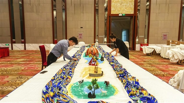 昌吉园林宾馆服务人员正在为游客布置主题餐厅。□孙 娜摄