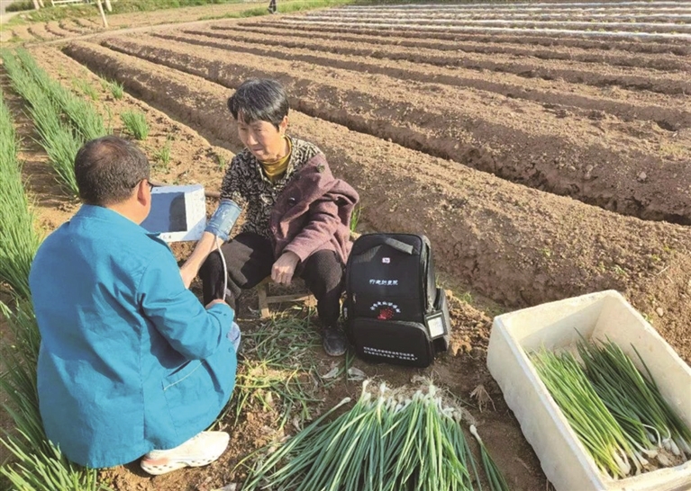 近日,健康师背着“行走的医院”全科医生助诊包来到田间地头,为村民做检查。 □李玉梅摄