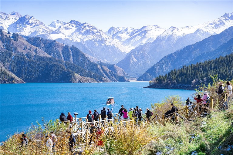 10月1日,游客在阜康市天山天池景区游览。 本报记者 何 龙摄