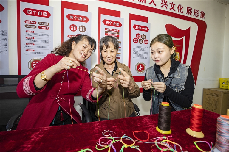 为丰富辖区老人的精神文化生活,让老人感受到关爱与温暖,十月九日,昌吉市延安北路街道开展了“重阳扬新风 银龄俏夕阳”主题实践活动。图为活动现场,辖区的老人制作手工艺品。 □本报记者 巨海成摄