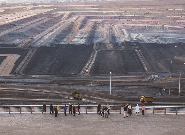10月16日,观摩团在国家能源集团新疆能源有限责任公司准东露天煤矿参观,智能矿山建设吸引很多人前来参观考察。