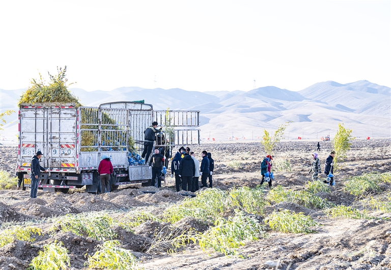 10月23日,昌吉市三工滩义务植树基地,来自昌吉州、昌吉市的干部职工和志愿者进行秋季义务植树。 当天,1000多名各部门干部职工和志愿者共栽种了1.8万多株胡杨和沙枣树,为家乡再添新绿。 □本报记者 何 龙摄