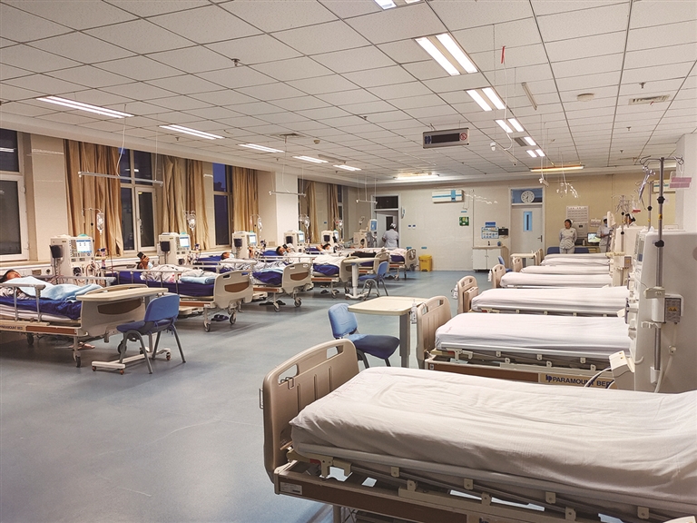 血液透析是医院的常规治疗手段之一,患者需要定期到医院治疗,每次透析时长是4小时,这对于上班族或日间不便透析的患者来说非常不便。新医大一附院昌吉分院夜间透析服务时间为每周一、周三、周五的19时至21时,上机时间为19时,确保四个小时的充分透析。