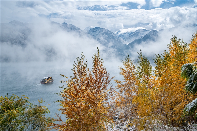 天山天池景区层林尽染,五彩斑斓,瑰丽多姿。 □鱼新明摄