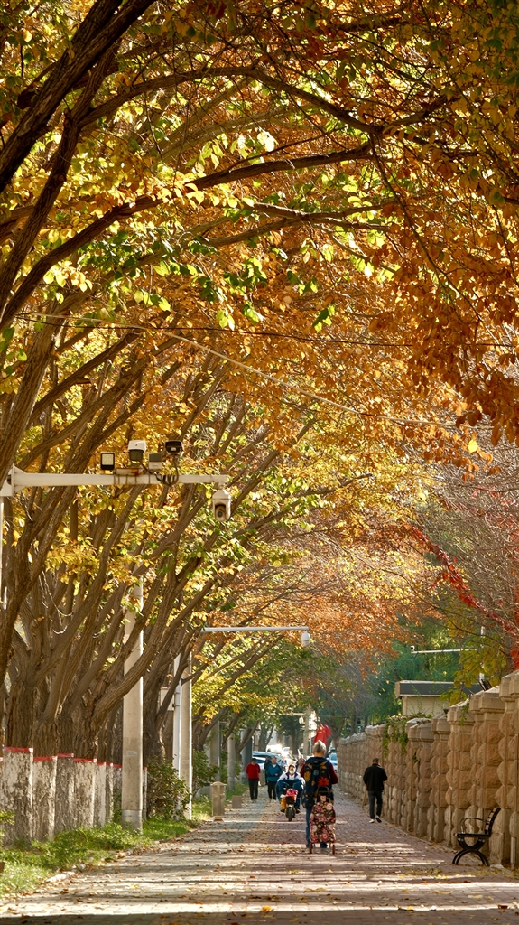 昌吉市秋意渐浓,市民漫步在林荫大道,构成诗意温馨的秋日画卷。□叶尔克西摄