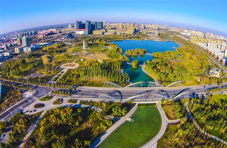 一张秋日明信片——秋色中的昌吉市滨湖河中央公园。□孟志安摄