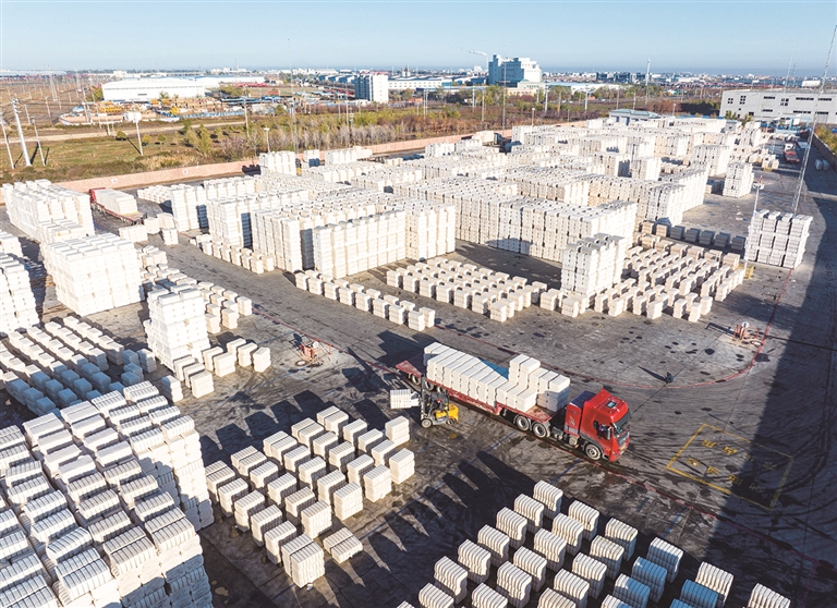11月3日,昌吉市华嵘电子商务有限责任公司华宏棉花专业监管仓库,工作人员正在转运棉包。 眼下正值皮棉调运交割高峰期,昌吉州各棉花加工企业加紧将皮棉入进专业监管仓库。昌吉市华嵘电子商务有限责任公司华宏棉花专业监管仓库位于昌吉市亚欧国际物流园内,毗邻G7京新高速、兰新铁路,建有棉花专业室内库房12栋,室外堆场4万平方米,总库容达到12万吨,日装卸能力4000吨,物流仓储优势条件吸引了本地及周边县市的30多家棉花加工企业来这里入库皮棉,进行公正检验。 □本报记者 何 龙摄