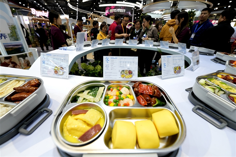 11月6日,在第七届进博会食品及农产品展区,上海康养集团首次展示“肌少症膳食营养处方”。□新华社记者 张建松摄
