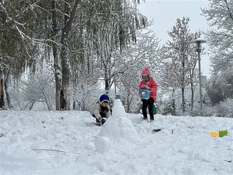 昌吉市民余洋和好朋友也带孩子来公园玩耍,堆雪人、打雪仗,好不热闹。“我们平时没时间带孩子出来玩,正好这两天下雪了,不仅能让孩子在户外活动一下,还能领略冬日的美景。”余洋说。