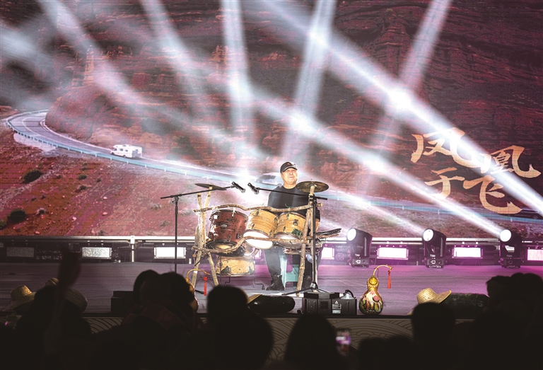 舞台上,张宏远打着架子鼓,演唱了原创音乐作品《忆中国》《S101》。朴实的歌词、粗犷的唱腔,把他爱家乡、唱家乡的真挚情感演绎得淋漓尽致,歌声直抵人心。