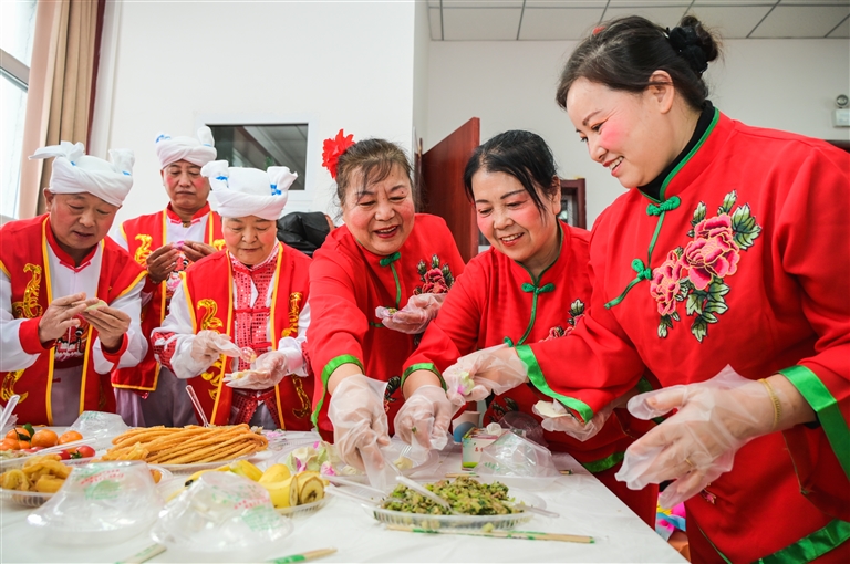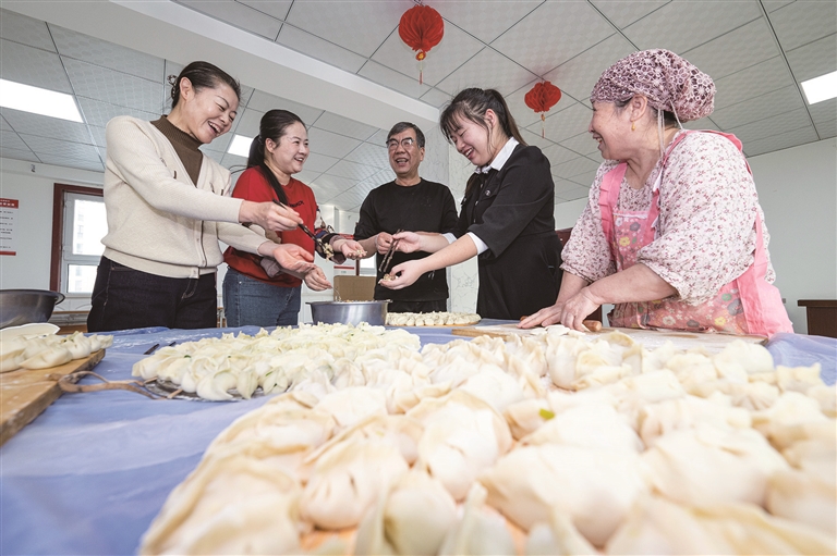 看,社区的庭院中,邻里相携,长桌铺陈,众人围聚,制作象征圆满的饺子。在这融融暖意里,古老的孝善文化与淳朴的民风民情交织。