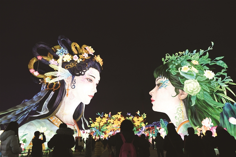 这是1月17日在四川省自贡市中华彩灯大世界拍摄的“青城双姝”彩灯。 当日,2025年“非遗贺新春 点亮中国灯”全国主会场活动暨第31届自贡国际恐龙灯会在四川省自贡市中华彩灯大世界启动。本届灯会打造“迎春贺年”“华彩神州”“欢乐盛典”“文明交辉”等七大主题区,展出12组特大型灯组、7组大型灯组以及200余组中小型灯组。 □新华社记者 唐文豪摄