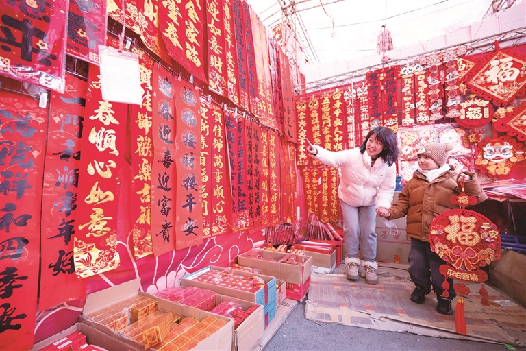 1月20日,市民在昌吉市亚中商城年货市场选购新春饰品。 临近春节,昌吉市亚中商城年货市场一片红红火火的景象,浓浓的年味扑面而来,大大小小、不同样式的红灯笼、春联、“福”字、中国结等传统新春饰品应有尽有,吸引许多市民前来选购。 □本报记者 何 龙摄