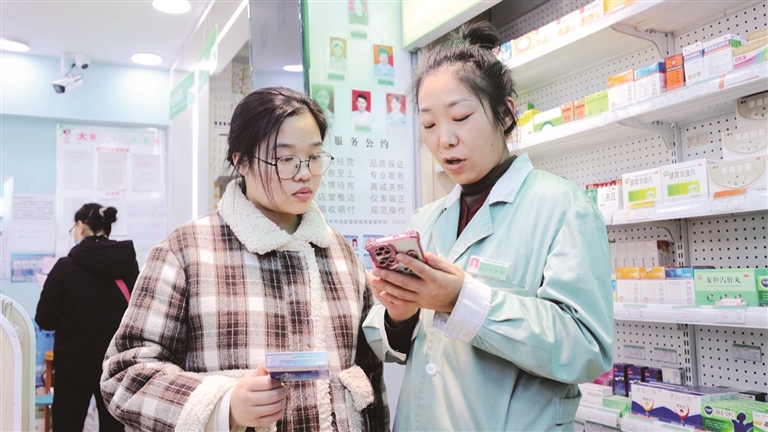 顾客用“医保药品智慧比价”系统查询药品信息。