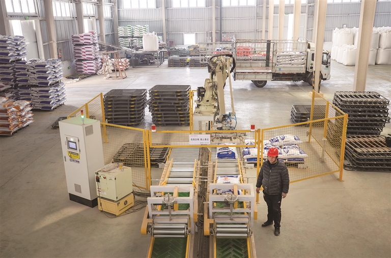 2月26日,在吉木萨尔县大北农农牧科技有限责任公司生产车间,工作人员在检查生产线运行情况。该公司主要以生产猪饲料为主,今年预计销售45000吨饲料,产值1.2亿元。□本报记者 巨海成摄