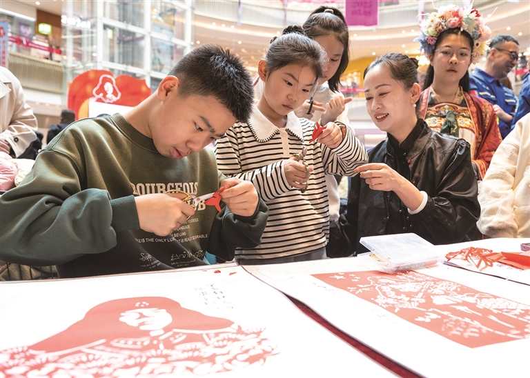 3月2日,汇嘉时代昌吉购物中心活动现场,小朋友参与雷锋肖像剪纸活动。 □本报记者 何 龙摄