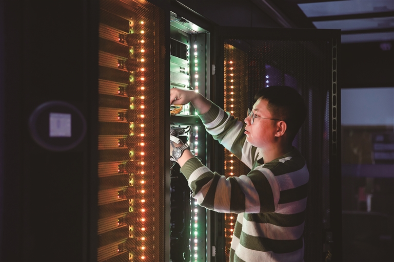 走进位于昌吉市的新疆(昌吉)信息产业园,厂房内载满智算服务器的一排排黑色机柜嗡嗡作响,指示灯交替闪烁、片刻不息。