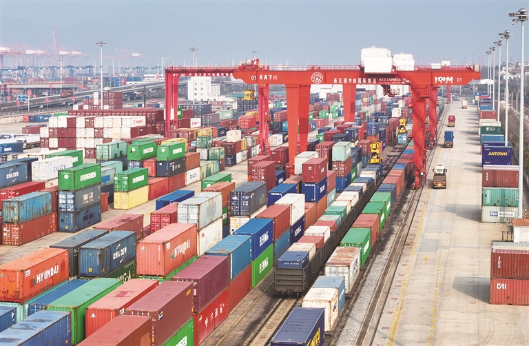 今年以来,中哈(连云港)物流合作基地积极加强国际货源组织,创新“班列+产业+贸易”的服务业态,中欧班列保持平稳增长态势。今年前两个月中欧班列累计到发176列,同比增长22.9%。□新华社发(王健民摄)