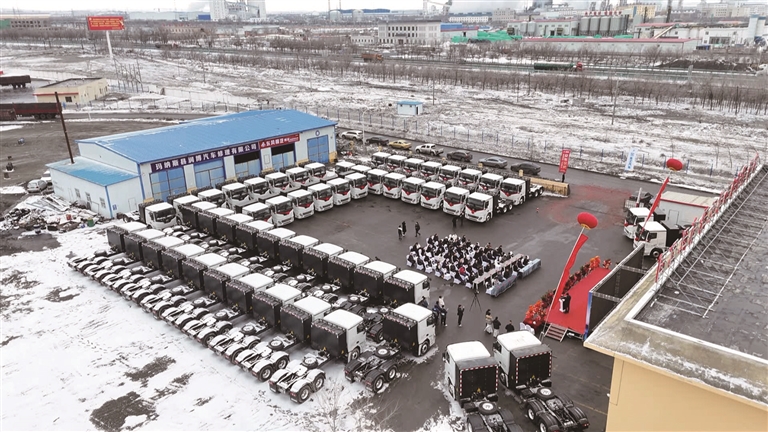 本报讯 通讯员胡伟杰、张智龙报道:3月13日,玛纳斯县举行以“生态玛河·绿驰天山”为主题的新能源重卡交车仪式。