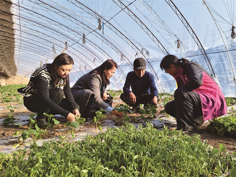 近日,昌吉州、市农牧业技术推广中心技术人员走进大棚与种植户交流,向他们提供技术指导。□张 楼摄