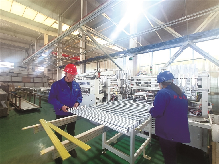 新铝铝业自2017年开始转型至高端铝制品生产。企业为了向高质量发展转型,遇到棘手的难题是必然的,12年间,胥文才始终保持着“做到极致”这样的“执念”,紧跟企业转型升级步伐,以学提能,迸发自我革新力,突破一个个技术难关。2023年,新铝铝业投资3000多万元,新上两条太阳能光伏边框生产线,产能由此增加15%,实现新的跃升。“这个新设备是全自动的,带有机器人,能使我们的产能提升,人力、能耗等方面降低。”胥文才说。