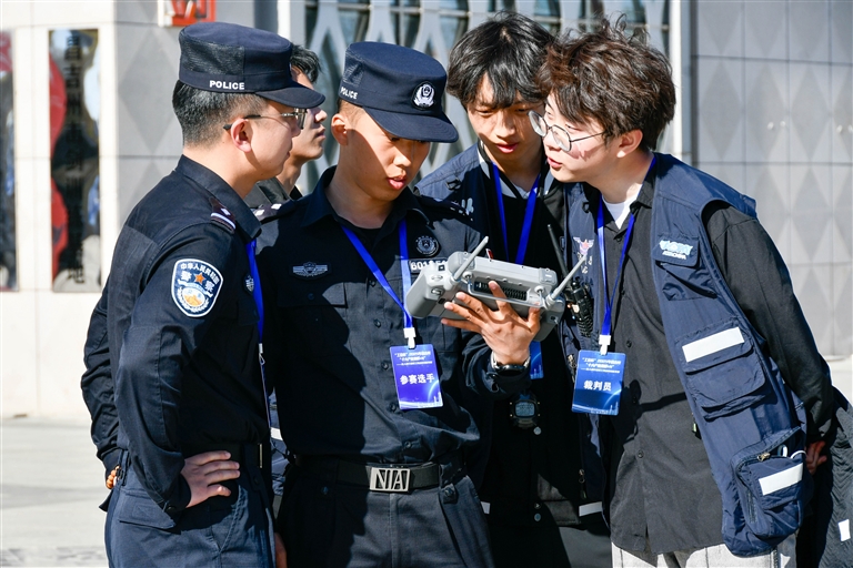 当天上午,新疆农业博览园的试验田上空马达轰鸣,8架农用植保无人机整齐列阵,在无人机驾驶员的精准操控下,时而低空匀速喷洒药物,时而悬停转向,划出一道道优美的弧线。同一时间,在距试验田13公里以外的昌吉体育馆西侧,身着制服的47名边防干警正在进行室内无人机装调和室外无人机飞行的竞技比拼。