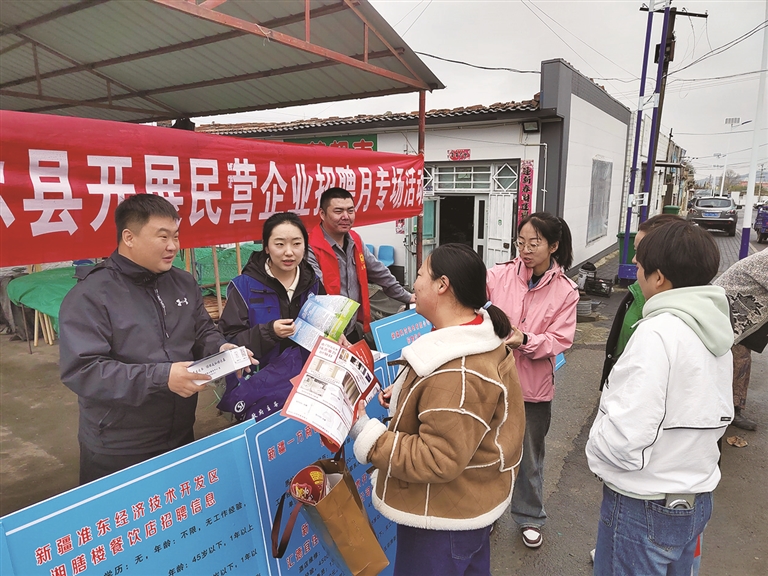 近日,吉木萨尔县公共就业服务中心在泉子街镇集市举办民营企业招聘月专场活动。□蔡欣宇摄