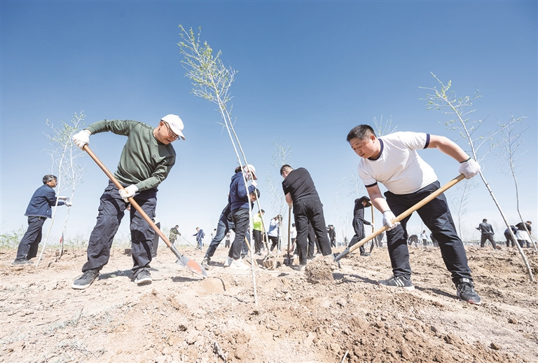 4月23日,志愿者在昌吉市北部荒漠义务植树点进行春季义务植树。当日,昌吉州组织2000余名干部群众在这里齐心协力种下4万余株树苗,为当地生态建设再添新绿。 □本报记者 何 龙摄