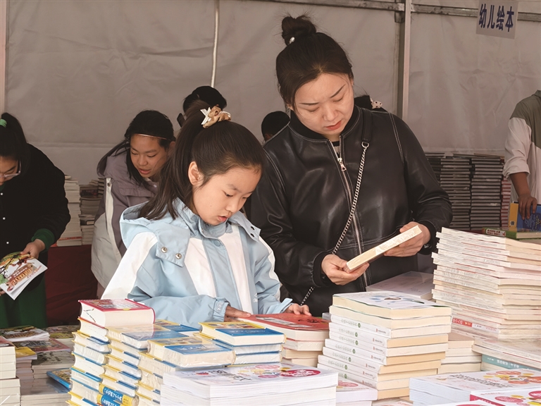 在活动现场,主办方设置了社科文学、青少年读物、历史人物、作文大全、幼儿绘本等阅读选购区域,不少市民带着孩子前来挑选读物。