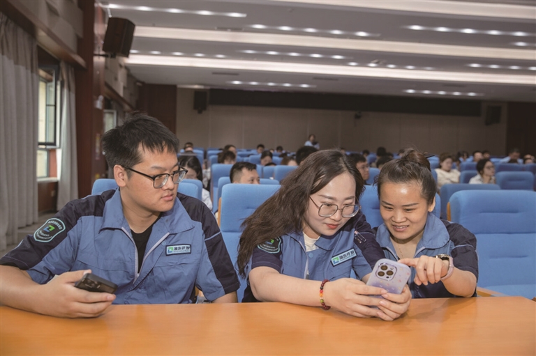 4月29日,在准东经济技术开发区新疆准东能源投资集团有限公司,企业员工正在学习如何使用手机摄影。□本报记者 巨海成摄