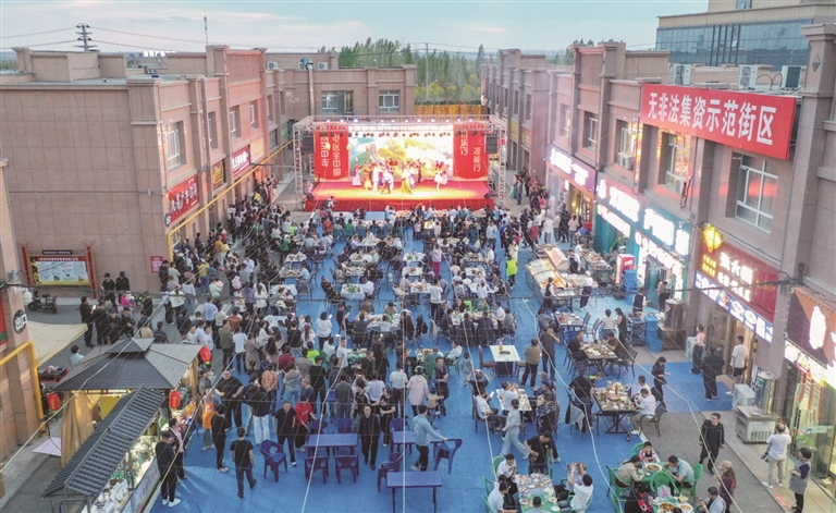 夜幕降临,准东夜市烟火升腾。美食飘香,舞台上节目精彩纷呈。动感旋律、柔美舞蹈、诙谐小品、激昂歌声,台上台下共融欢乐海洋。露天电影播放至凌晨,人们沉浸其中,享受文化带来的慰藉。
