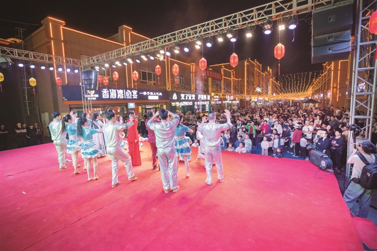 4月28日,在准东经济技术开发区夜市,昌吉州艺术剧院2025年“我们的中国梦——文化进万家”及优质文化“七进”下基层惠民演出拉开帷幕,舞台上节目精彩纷呈。□本报记者 巨海成摄