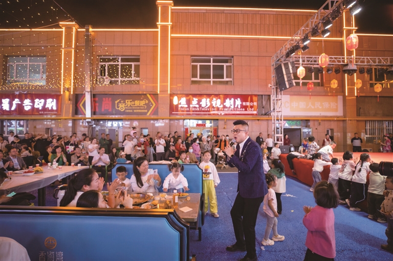 4月28日,在准东经济技术开发区夜市,昌吉州艺术剧院2025年“我们的中国梦——文化进万家”及优质文化“七进”下基层惠民演出拉开帷幕。活动现场,演员和观众进行互动。