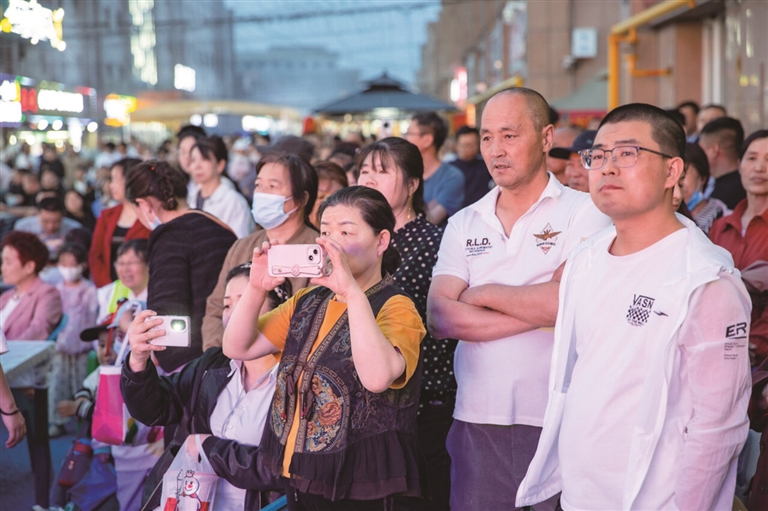 4月28日,在准东经济技术开发区夜市,昌吉州艺术剧院2025年“我们的中国梦——文化进万家”及优质文化“七进”下基层惠民演出拉开帷幕。活动现场,观众纷纷用手机记录精彩瞬间。□本报记者 巨海成摄