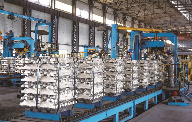 5月19日,新疆准东经济技术开发区其亚新疆集团有限公司铝锭铸造生产车间,工作人员在铝锭铸造生产线上作业。 其亚新疆集团有限公司依靠准东开发区储量丰富的煤炭资源,以铝基、硅基、现代煤化工、火电、新能源发电为主产业的多链驱动产业升级,构建起“矿石-金属-新能源”全生命周期产业矩阵。10万吨高纯晶硅生产线与120万吨电解铝产能形成耦合效应,阳极碳素、铝加工等配套项目实现资源闭路循环。截至目前,该企业在准东经济技术开发区已累计完成投资350亿元,实现年销售收入超200亿元,迅速跻身全国铝业十强。 □本报记者 何 龙摄