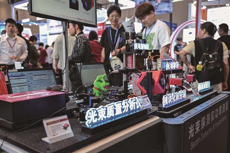 能背在身上的激光工坊、可每秒传输1.2TB数据的光纤、会自动对焦的手机热像仪……5月15日至17日,第二十届“中国光谷”国际光电子博览会在湖北武汉举行,集中亮相的近百项全球光电领域前沿技术创新成果,折射出一束束“光”,正穿透千行百业,点亮多彩生活。