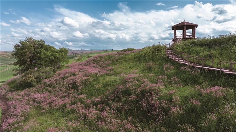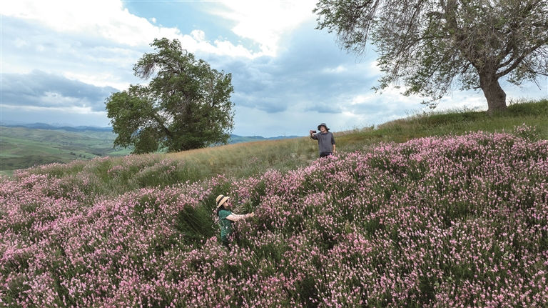 这几天,在木垒农业公园里,大片红豆草花盛开。微风吹过,紫粉色的花穗轻轻摇晃,空气里弥漫着甜甜的花香,一眼望去全是浪漫花海,美不胜收。