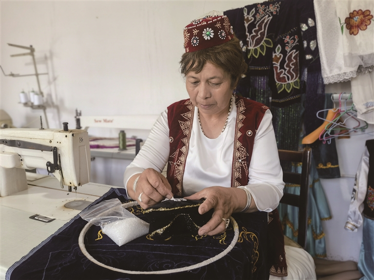 佐热·托来乌坎的家如今成了“课堂”。每逢周末,20岁的帕丽扎都要到这里来学艺。“我每次节假日都回来跟着家人学习刺绣,塔塔尔族服饰刺绣是中华文化的瑰宝,我会一直坚持下去的。”帕丽扎说。“看着年轻人愿意学,我打心底里高兴。只有让更多人了解、参与进来这门老手艺才能传承得更好。”佐热·托来乌坎感慨道。