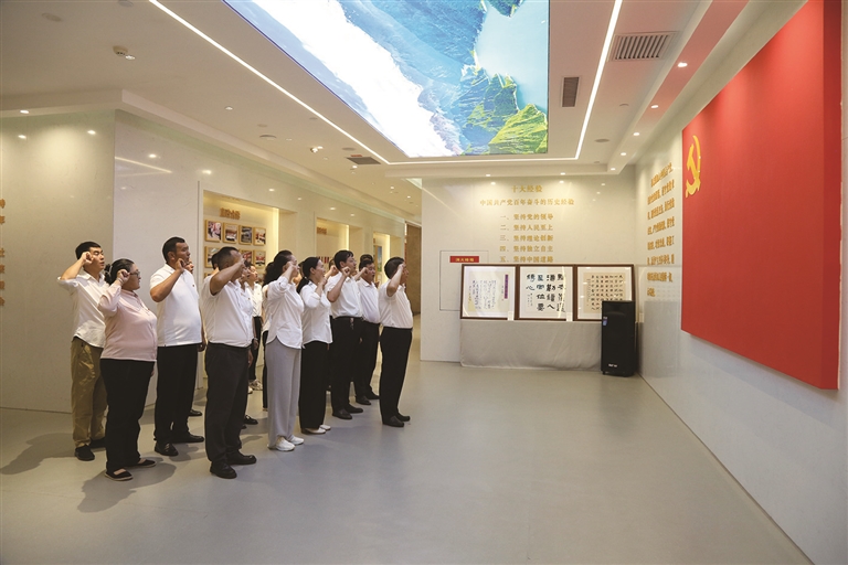 近日,吉木萨尔县政协机关党支部与吉木萨尔镇白泉村党支部联合开展第二十七个党风廉政教育月主题党日暨民族团结一家亲活动,深化党风廉政建设成果,铸牢中华民族共同体意识。图为党员干部在活动中重温入党誓词。□马 静摄
