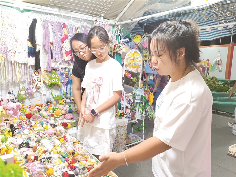 2023年夏天,余娜带着自己的作品首次在华洋夜市摆摊。“第一天特别紧张,生怕没人喜欢。”但出乎意料的是,她的手工制品很快吸引了顾客,两天就卖出了三四百元。“有个小女孩买了一只小熊挂件,第二天特意回来告诉我,她还要买一个送给她的好朋友,那一刻我特别感动。”被人需要,是一种幸福,余娜深受鼓舞。