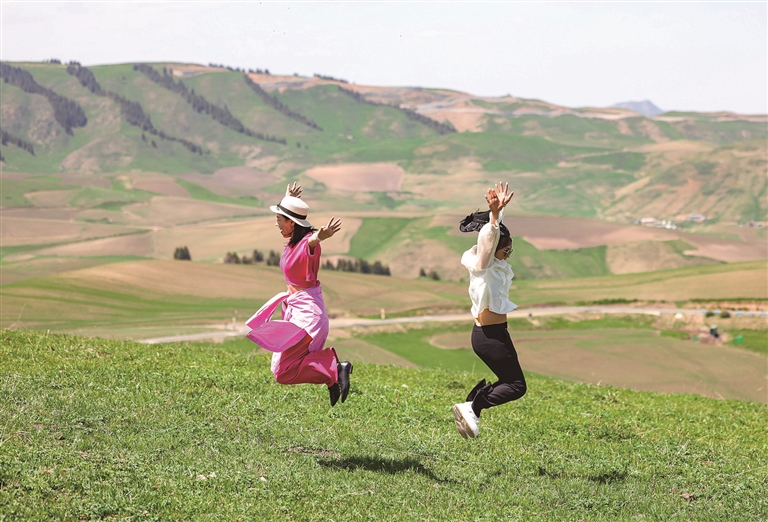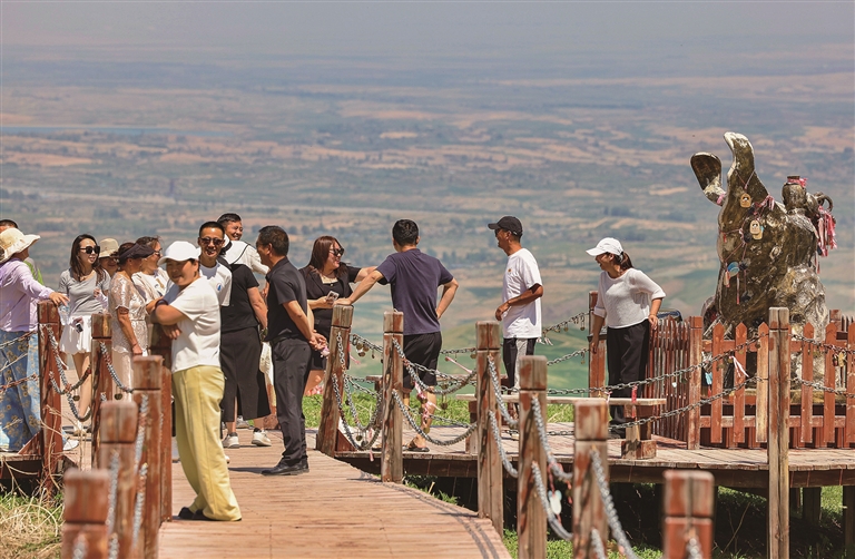 近日,奇台县江布拉克景区,游客远眺旱田美景。