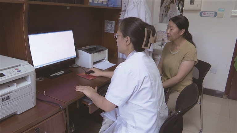 近日,昌吉市绿洲路社区卫生服务中心的医生通过基层医疗卫生机构信息系统为患者办理医保结算。□张圆圆摄