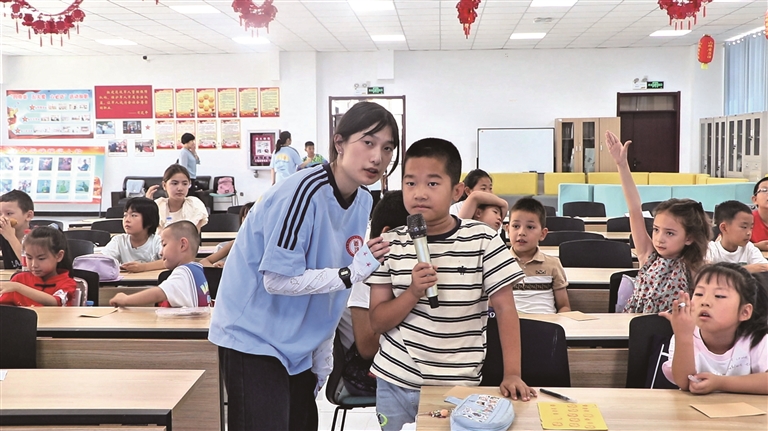 本报讯 通讯员冯紫卫报道:近日,中华女子学院联合自治区妇联在呼图壁县开展“足球赋能 石榴花开”主题社会实践活动。18名师生分赴呼图壁县呼图壁镇北门社区、双龙社区,为当地中小学生开设丰富多彩的课程,充实孩子们的暑期生活。
