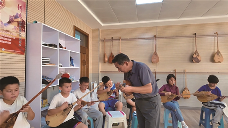近日,木垒县青少年活动中心,老师教孩子们弹冬不拉。□王嘉慧摄