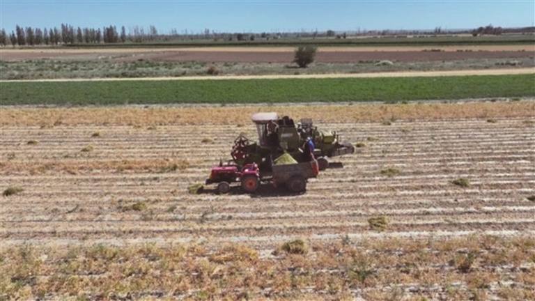 西吉尔镇鹰嘴豆种植户董建新说:“我今年种植了60亩鹰嘴豆,雇人收割花钱多、时间长,现在用改造后的收割机,几个小时就收完了,成本节省了一大半。”